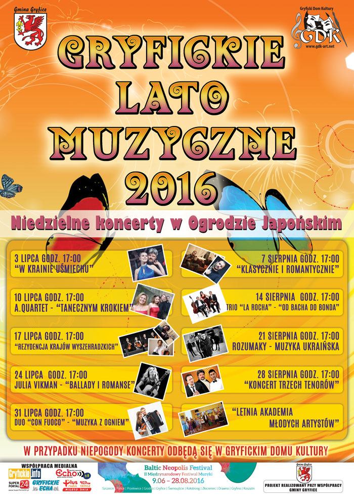 W TYM ROKU "GRYFICKIE LATO MUZYCZNE" ROZPOCZNIEMY 3 LIPCA 2016 R.